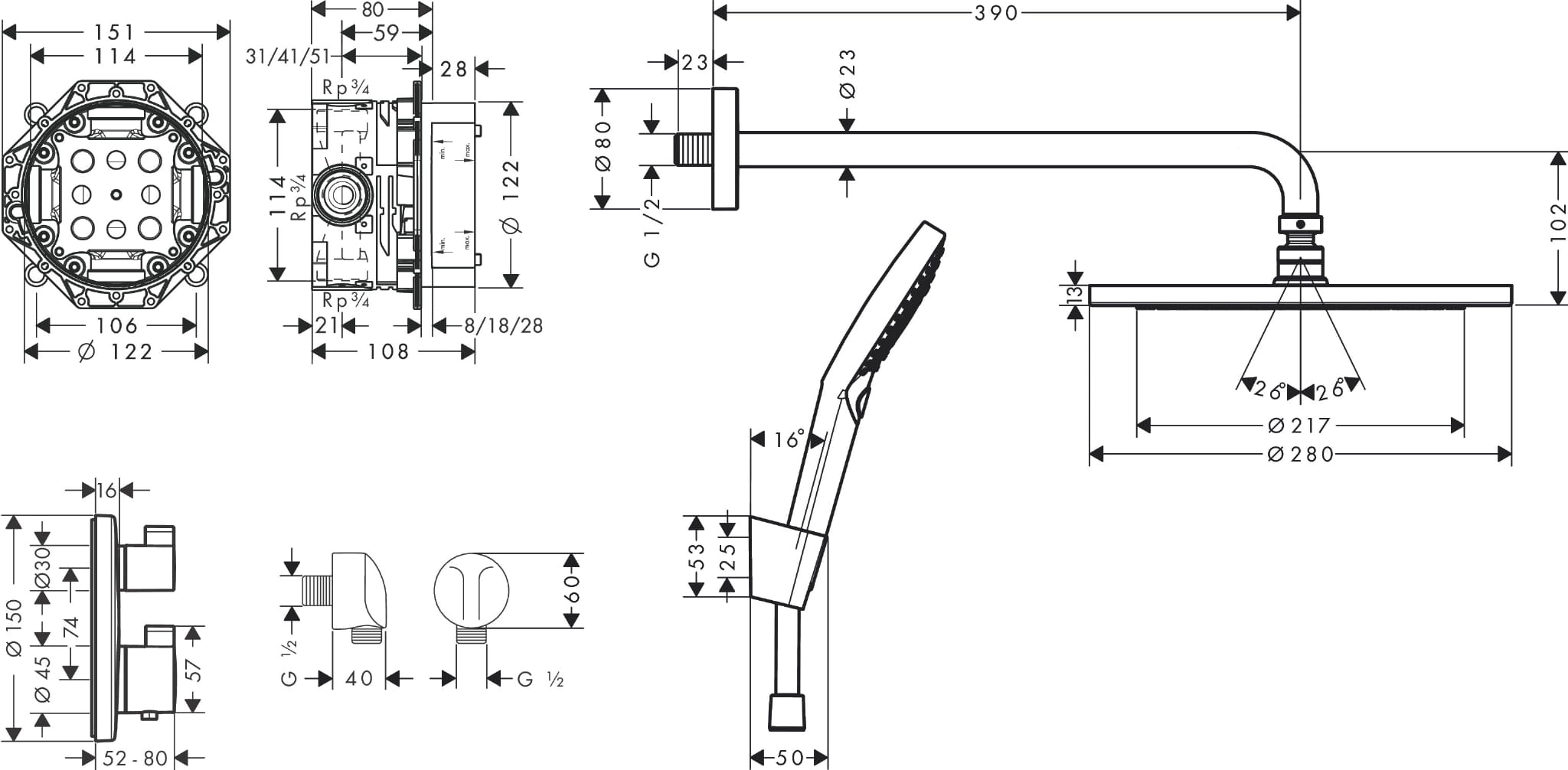 ✅ w składzie: zestaw podstawowy, główka prysznicowa, ramię prysznicowe, głowica prysznicowa, przyłącze węża, uchwyt prysznicowy, wąż prysznicowy, Bateria termostatyczna