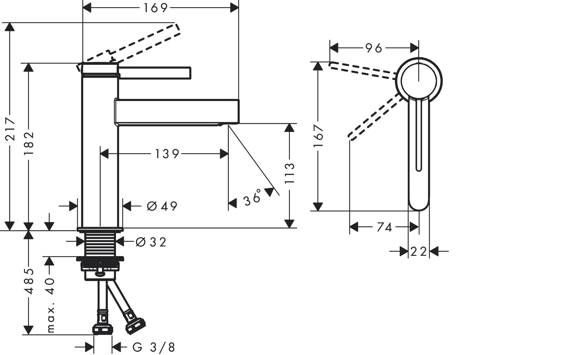 ✅ wysokość wylewki: 113 mm