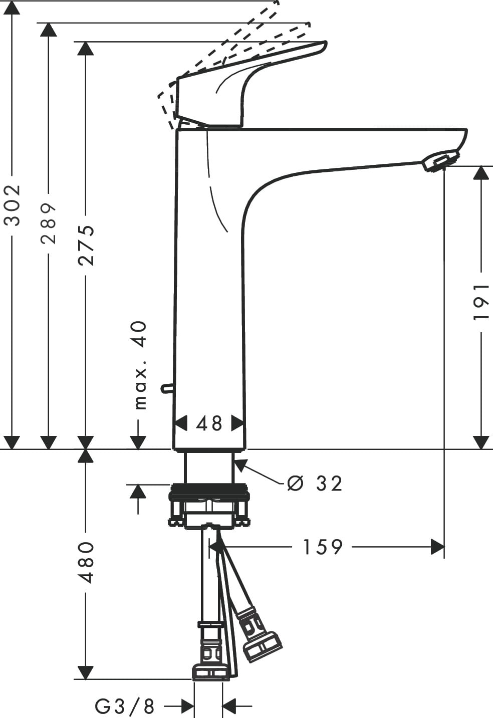 ✅ sposób montażu: węże przyłączeniowe G ⅜