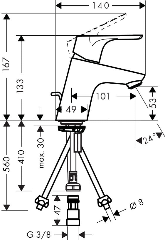 Hansgrohe Focus Jednouchwytowa bateria umywalkowa 70 do bezciśnieniowych podgrzewaczy wody z cięgłem