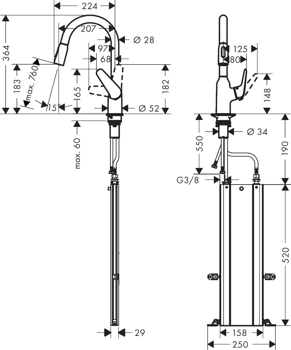 ✅ długość wyciągania węża: maksymalnie 76 cm