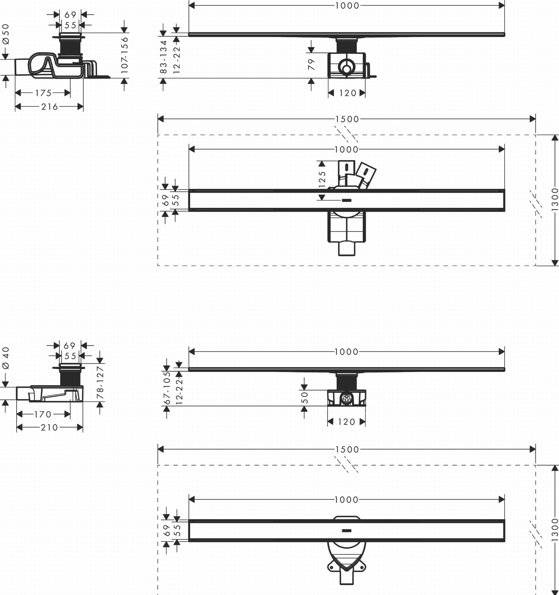 Hansgrohe RainDrain Allround Komplet odpływowy prysznicowy 1000 do montażu standardowego/płytkiego