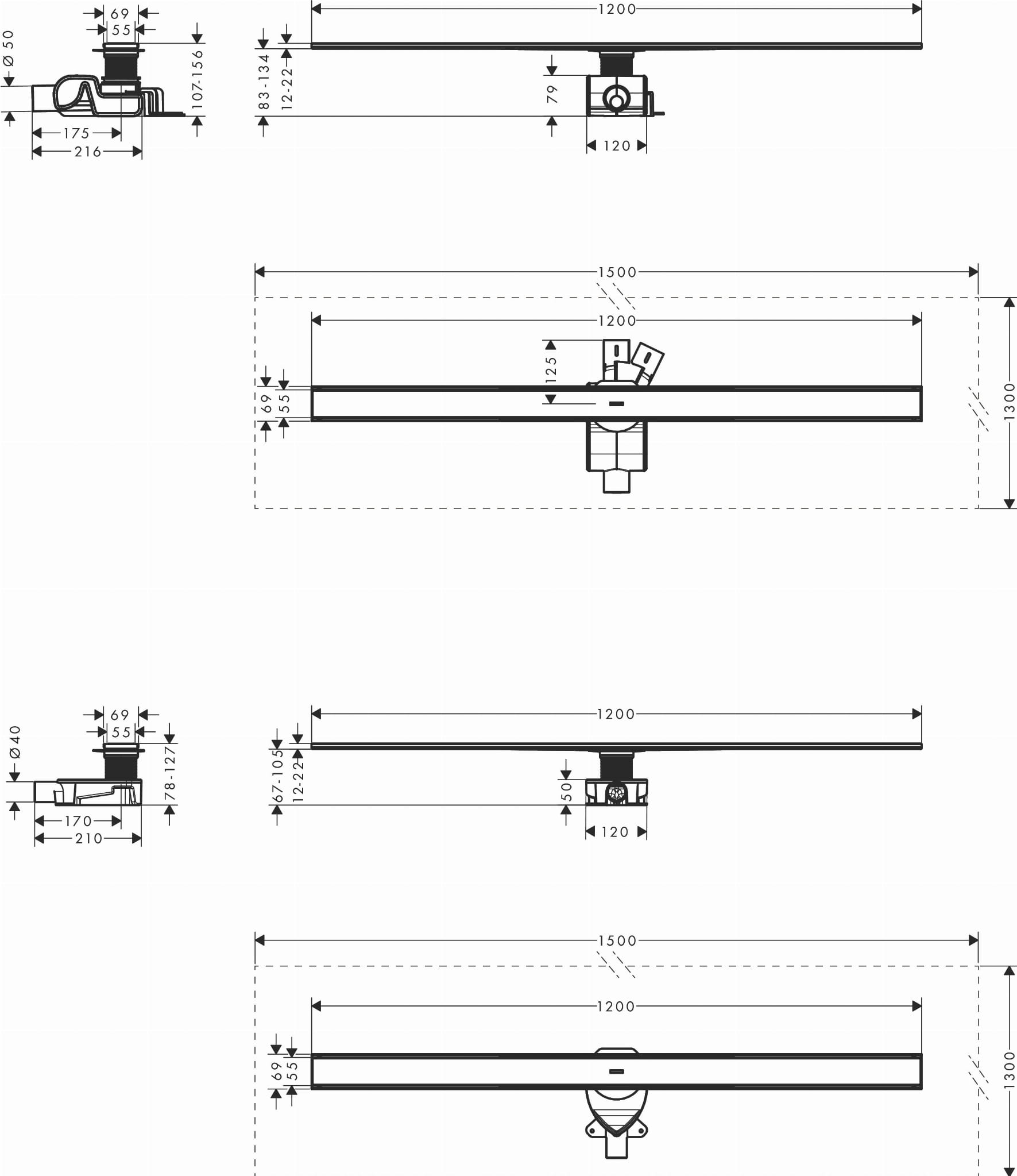 Hansgrohe RainDrain Allround Komplet odpływowy prysznicowy 1200 do montażu standardowego/płytkiego