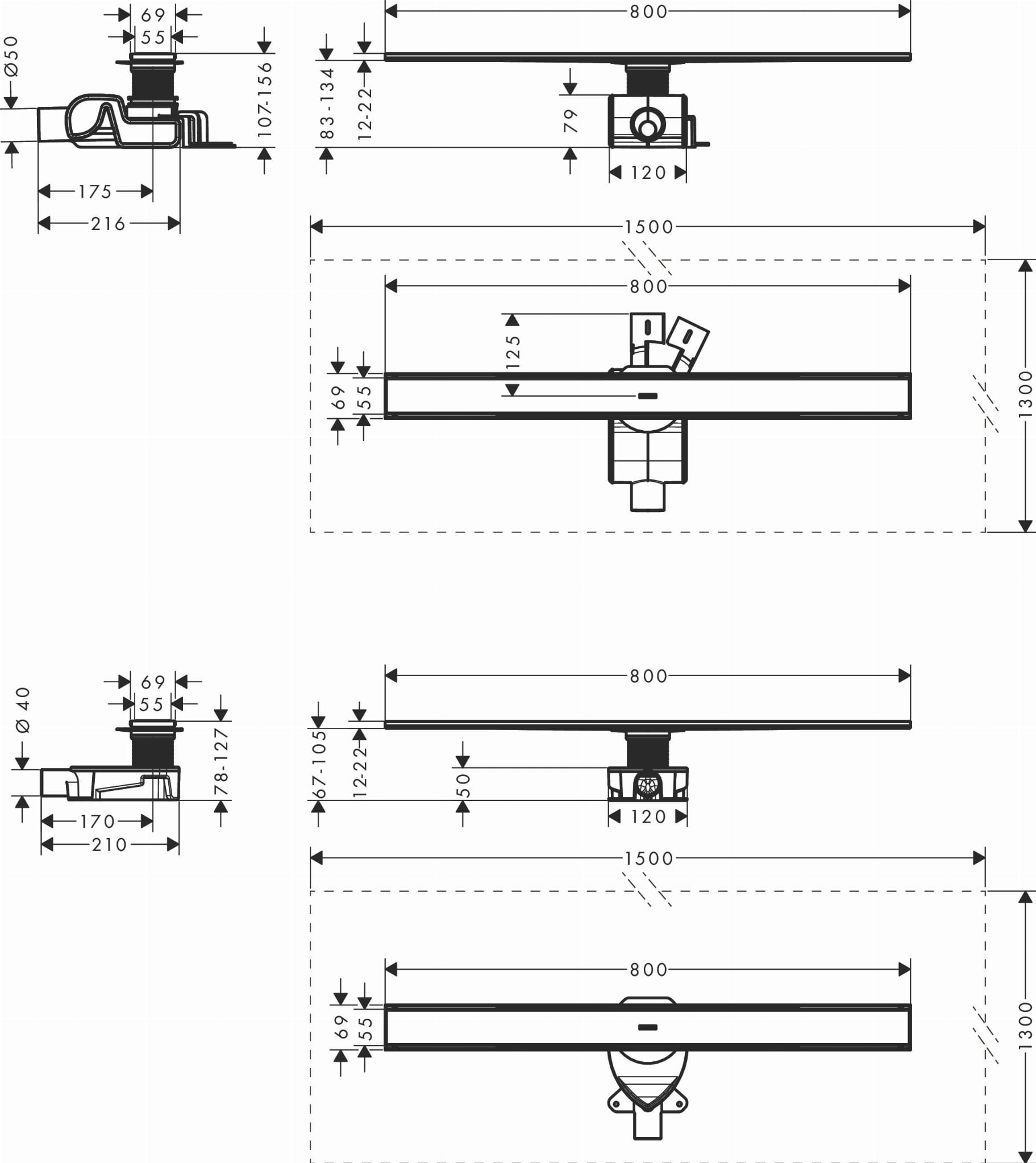 Hansgrohe RainDrain Allround Komplet odpływowy prysznicowy 800 do montażu standardowego/płytkiego
