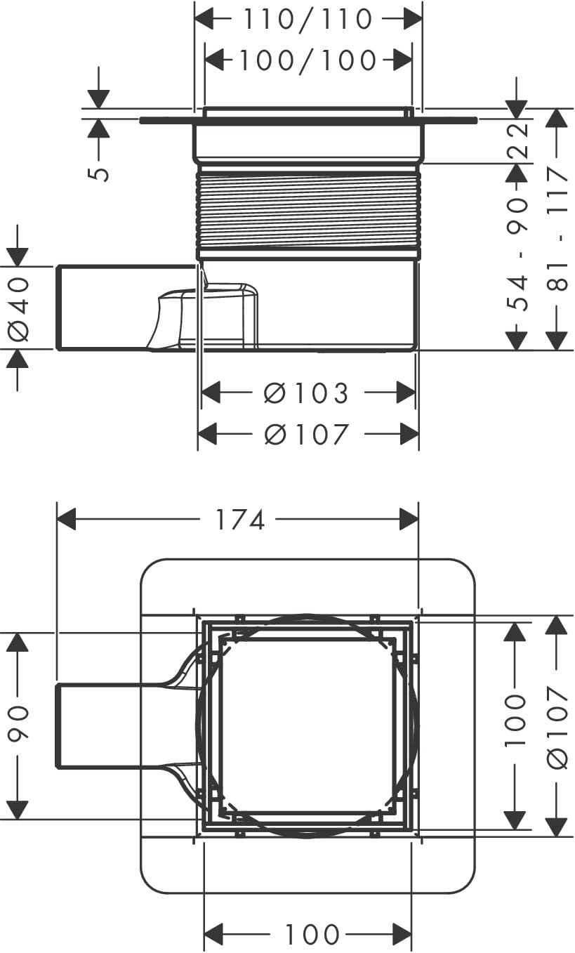 Hansgrohe RainDrain Brilliance Kompletny zestaw 100/100 odpływu punktowego z możliwością wyłożenia płytkami RainDrain Brilliance Czarny Matowy