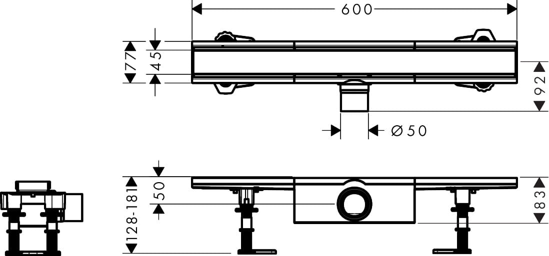 Hansgrohe RainDrain Compact Komplet odpływowy prysznicowy 600 do montażu standardowego RainDrain Compact Stal Szlachetna Szczotkowana