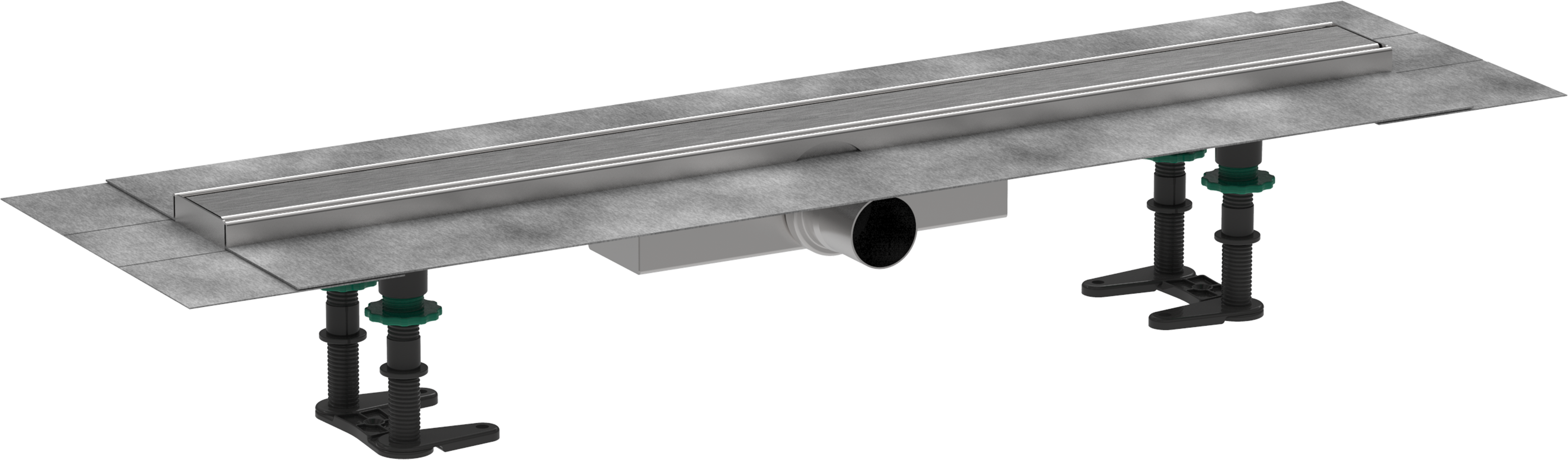 ✅ w składzie: odpływ liniowy, zestaw montażowy, syfon, wstępnie zamontowana membrana uszczelniająca, narzędzie do wyjmowania rusztu