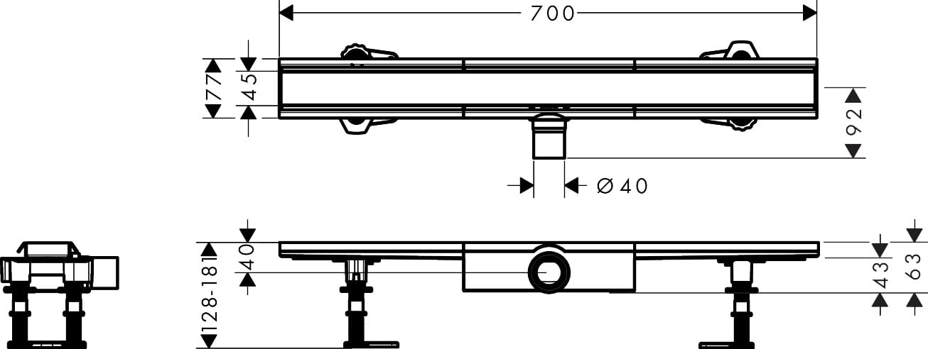 Hansgrohe RainDrain Compact Komplet odpływowy prysznicowy 700 do montażu płytkiego RainDrain Compact Stal Szlachetna Szczotkowana