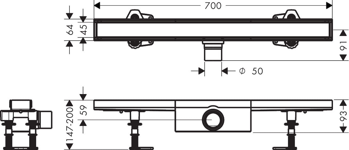 Hansgrohe RainDrain Compact Komplet odpływowy prysznicowy 700 do montażu standardowego RainDrain Compact