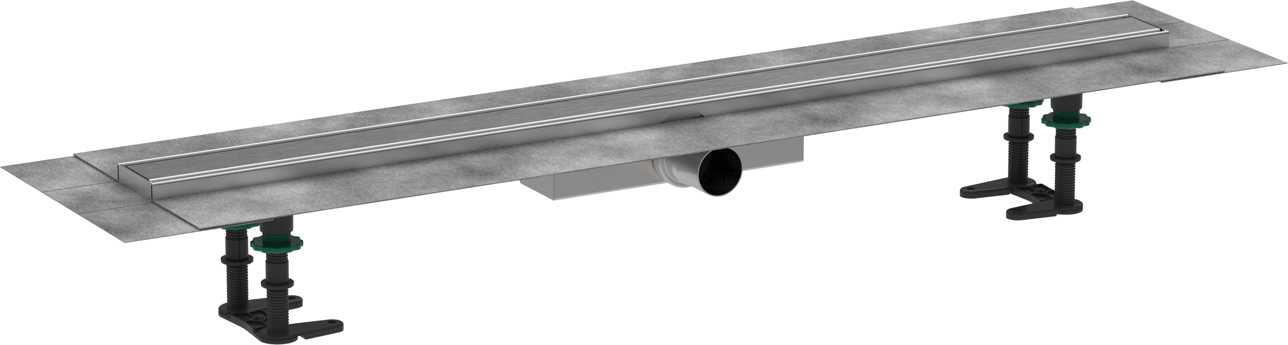 ✅ w składzie: odpływ liniowy, zestaw montażowy, syfon, wstępnie zamontowana membrana uszczelniająca, narzędzie do wyjmowania rusztu