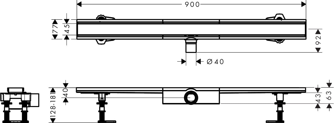 Hansgrohe RainDrain Compact Komplet odpływowy prysznicowy 900 do montażu płytkiego RainDrain Compact Stal Szlachetna Szczotkowana