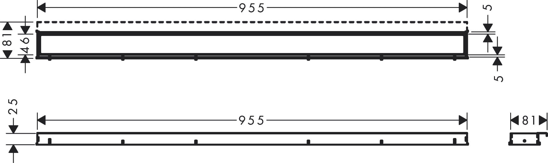 Hansgrohe RainDrain Match Element zewnętrzny odpływu 1000 ze stelażem o regulowanej wysokości RainDrain Match Czarny Matowy