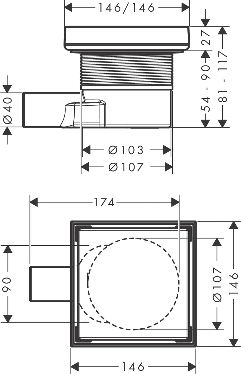 Hansgrohe RainDrain Point Kompletny zestaw 150/150 odpływu punktowego z możliwością wyłożenia płytkami