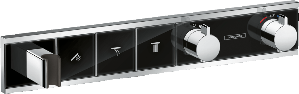 Hansgrohe RainSelect Bateria termostatyczna do 3 odbiorników, montaż podtynkowy, element zewnętrzny RainSelect Czarny/Chrom