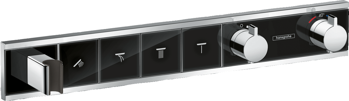 Hansgrohe RainSelect Bateria termostatyczna do 4 odbiorników, montaż podtynkowy, element zewnętrzny RainSelect Czarny/Chrom
