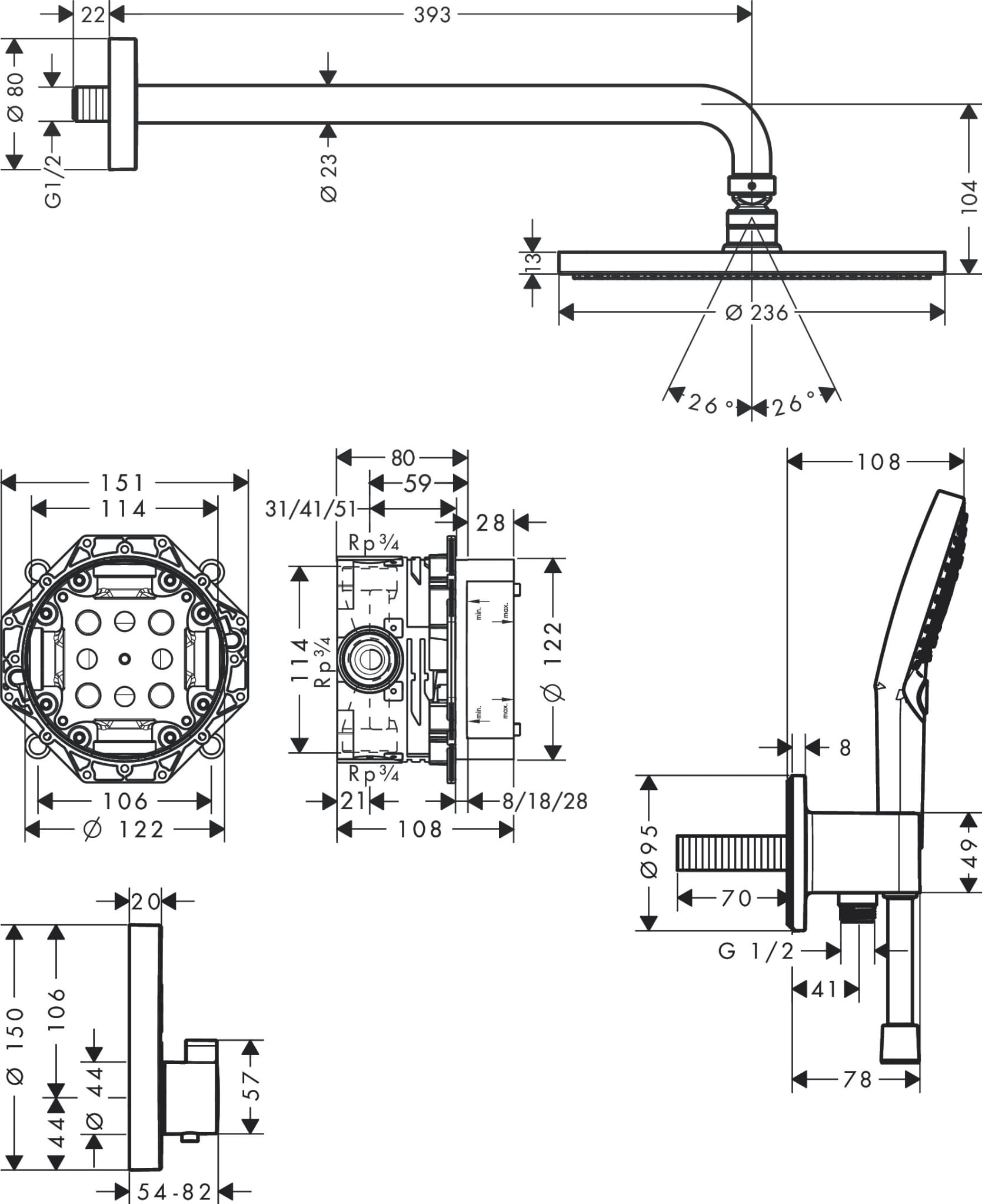 Hansgrohe Raindance S System prysznicowy 240 1 jet PowderRain z ShowerSelect S
