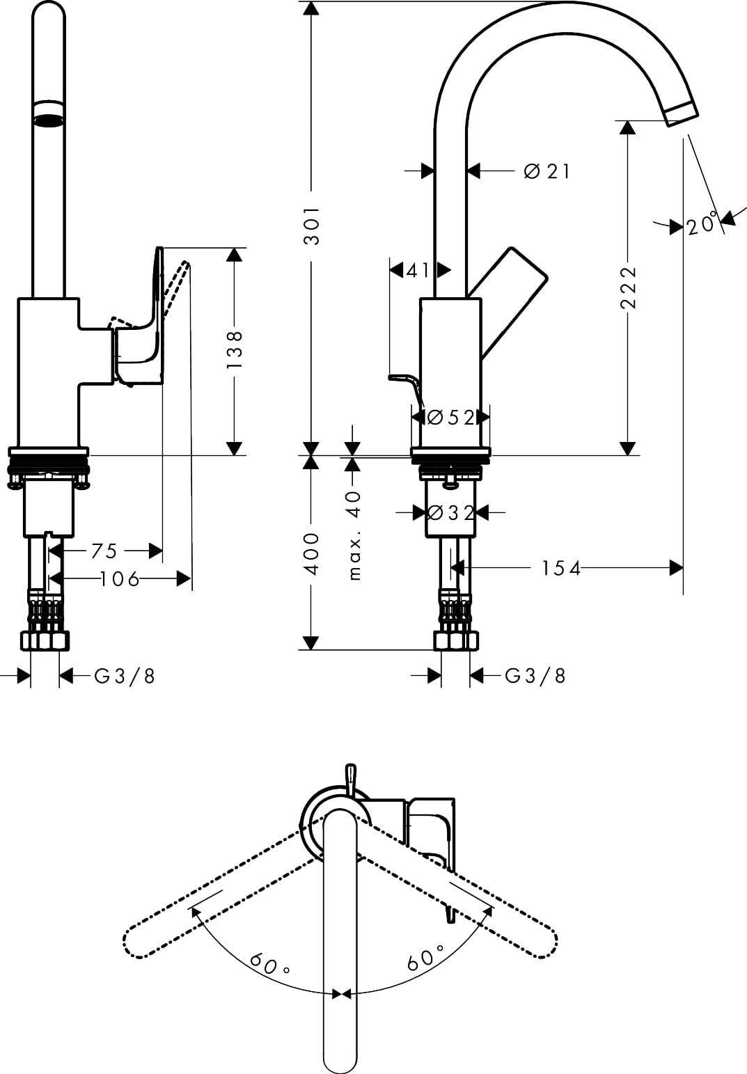 ✅ sposób montażu: węże przyłączeniowe G ⅜