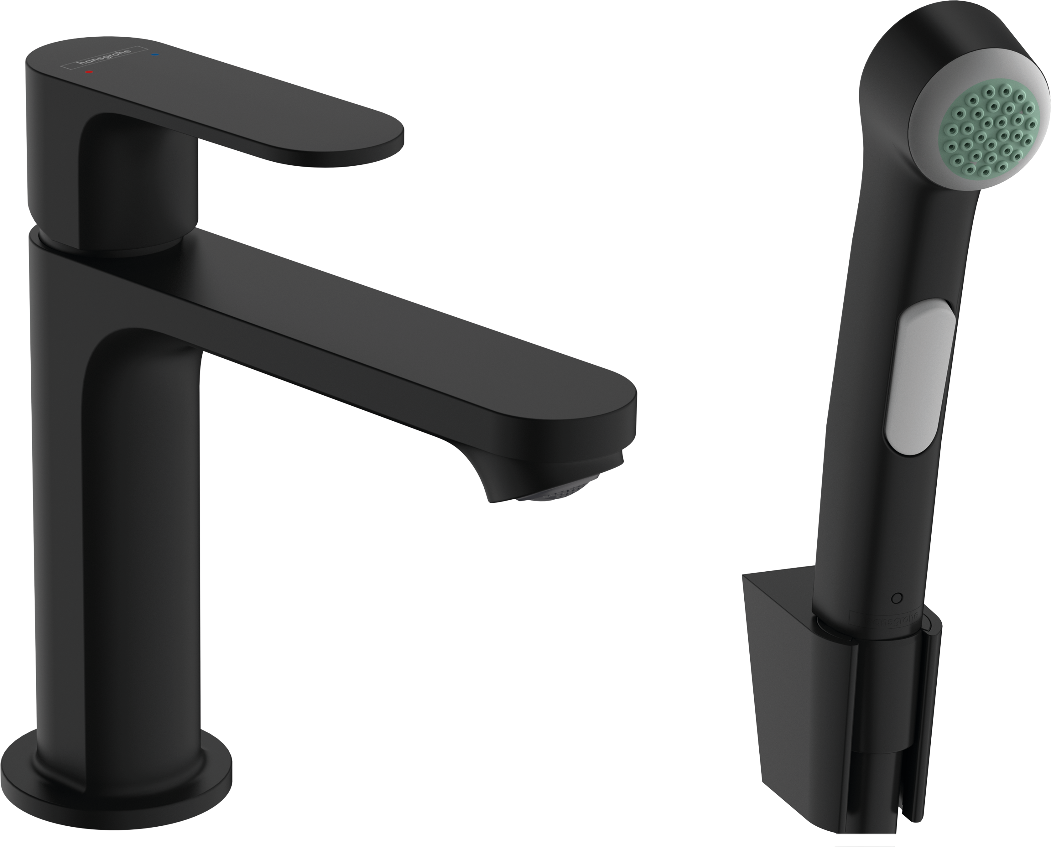 Hansgrohe Rebris S Jednouchwytowa bateria umywalkowa 110 z główką Bidette i wężem 160 cm bez kompletu odpływowego Rebris S Czarny Matowy