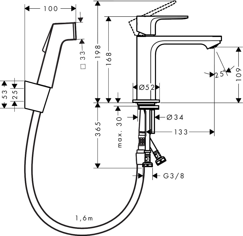Hansgrohe Rebris S Jednouchwytowa bateria umywalkowa 110 z główką Bidette i wężem 160 cm bez kompletu odpływowego