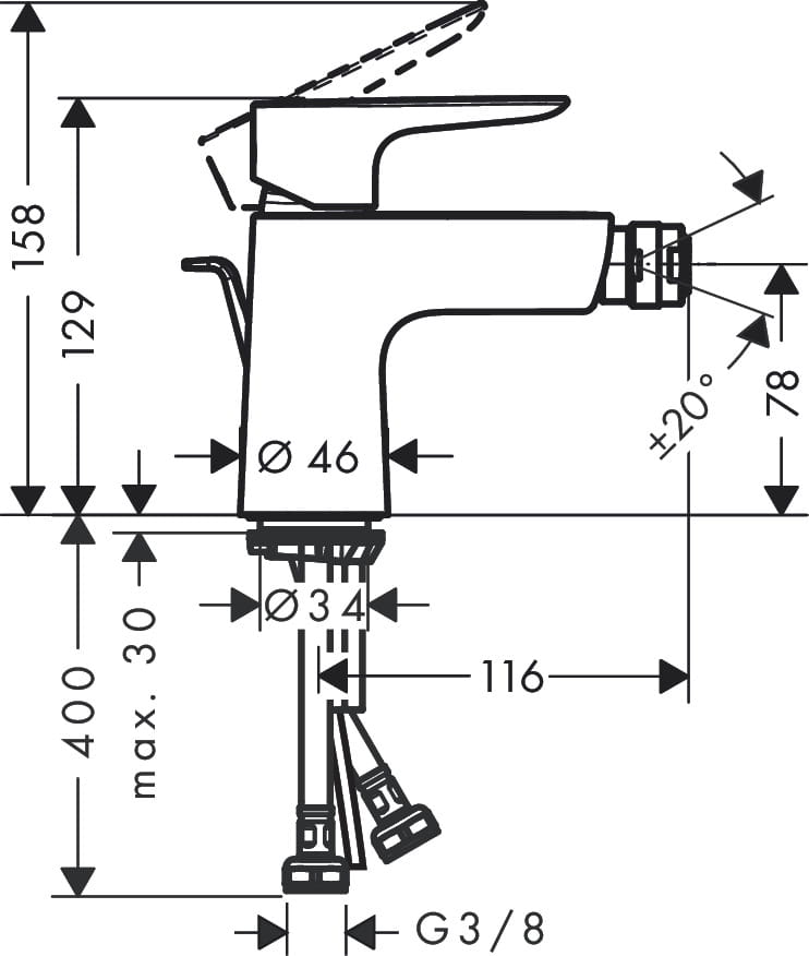 Hansgrohe Talis E Jednouchwytowa bateria bidetowa z cięgłem