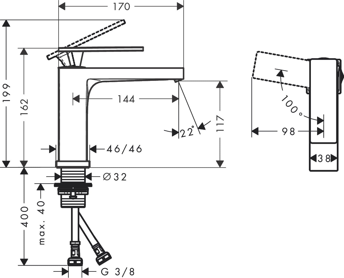✅ wysokość wylewki: 117 mm