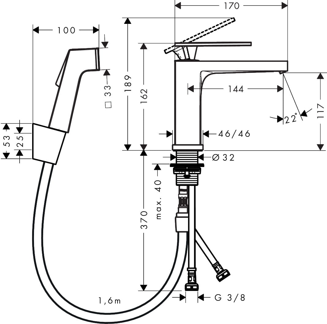 ✅ składa się z: jednouchwytowa bateria umywalkowa, główka prysznicowa Bidette, uchwyt prysznicowy, wąż prysznicowy