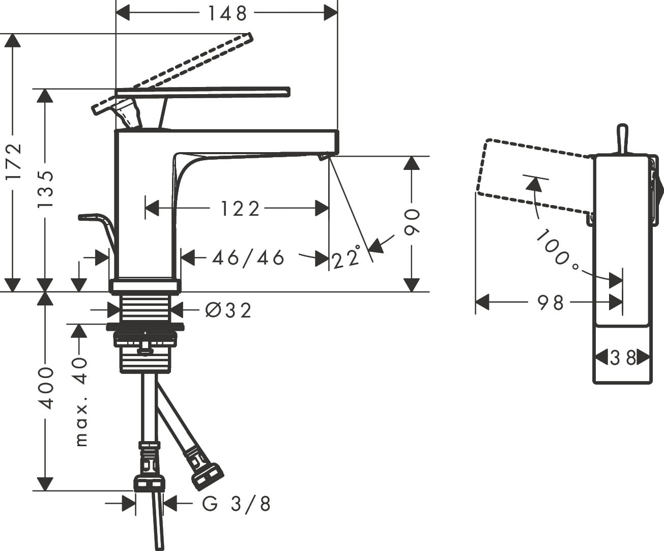 ✅ wysokość wylewki: 90 mm