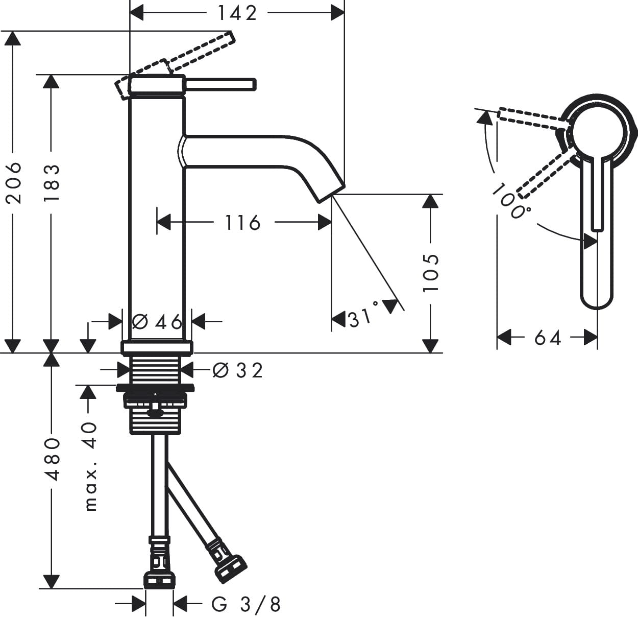 Hansgrohe Tecturis S Jednouchwytowa bateria umywalkowa 110 CoolStart bez kompletu odpływowego