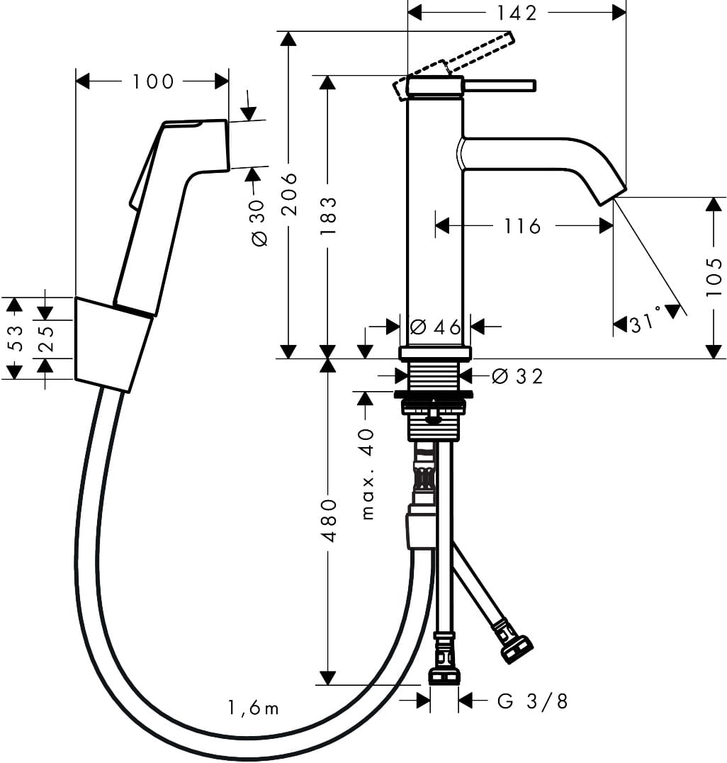 Hansgrohe Tecturis S Jednouchwytowa bateria umywalkowa 110 z główką Bidetta i wężem prysznicowym 160 cm