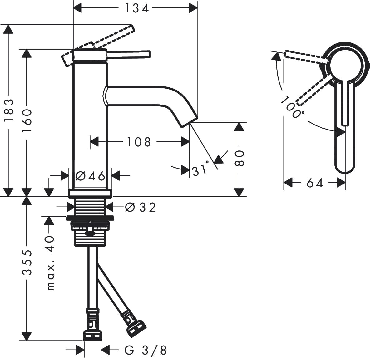 Hansgrohe Tecturis S Jednouchwytowa bateria umywalkowa 80 bez kompletu odpływowego