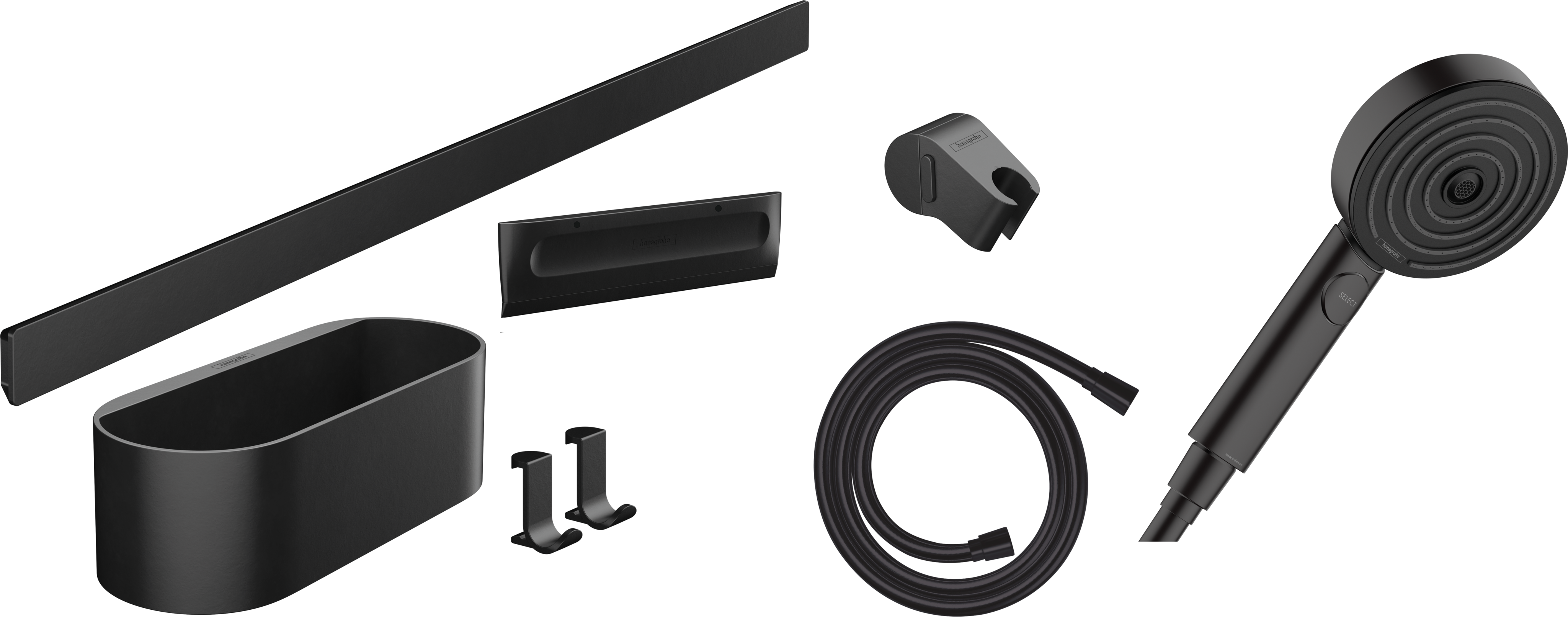 Kompletny zestaw: Akcesoria WallStoris z główką prysznicową, wężem i uchwytem prysznicowym od hansgrohe