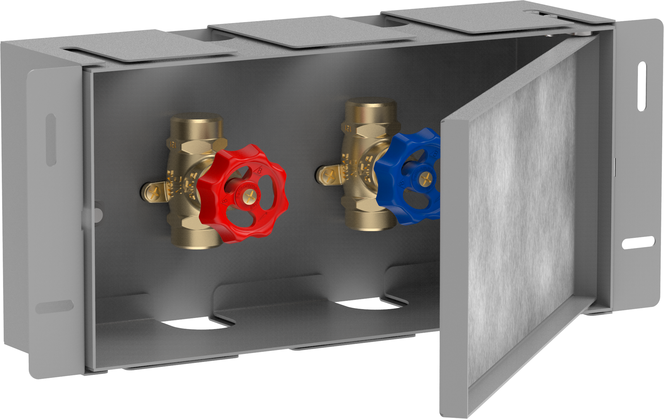 Uniwersalne rozwiązanie do pomieszczeń mokrych z zaworami odcinającymi zimną i ciepłą wodę