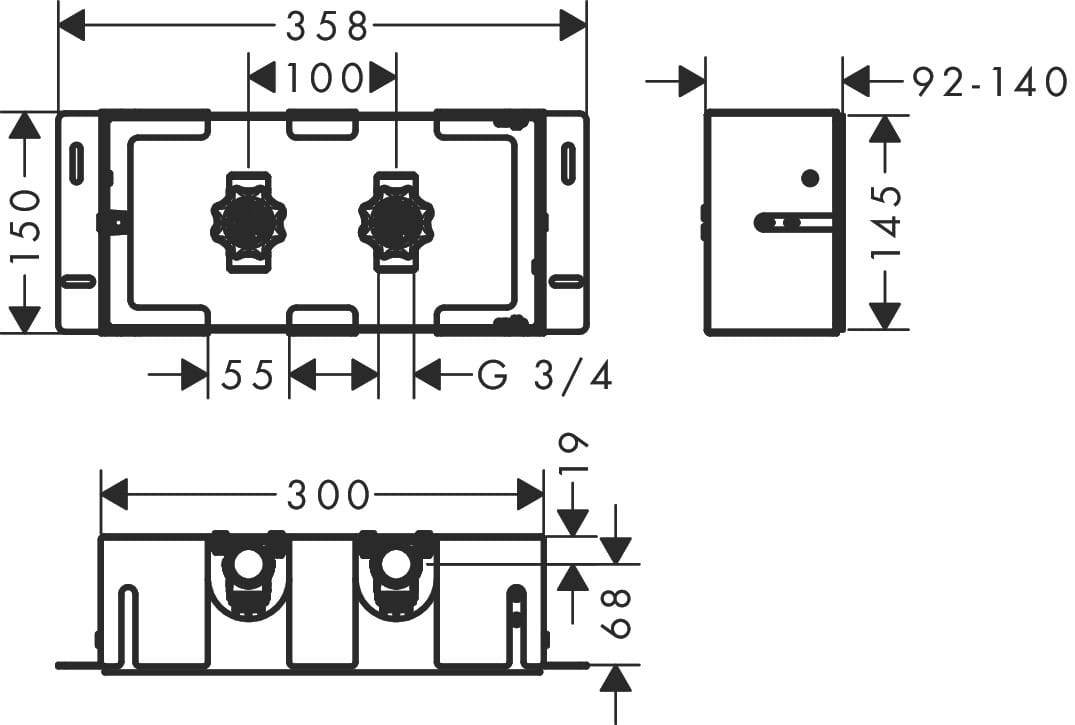 Wymiary wymagane dla zestawu montażowego: 150 x 358 x 92 mm (wys. x szer. x gł.)