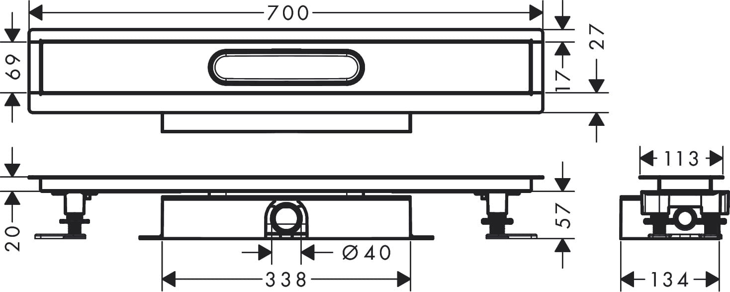 Hansgrohe uBox universal Kompletny zestaw do montażu płytkiego - 700 do odpływów liniowych