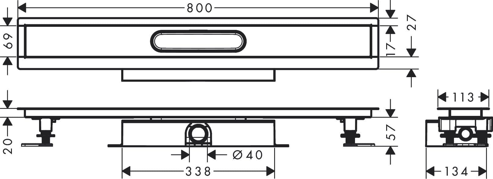 Kompletny zestaw do płaskiego montażu odpływów prysznicowych hansgrohe RainDrain Rock i RainDrain Match 800 (wysokość zamknięcia wodnego 30 mm)