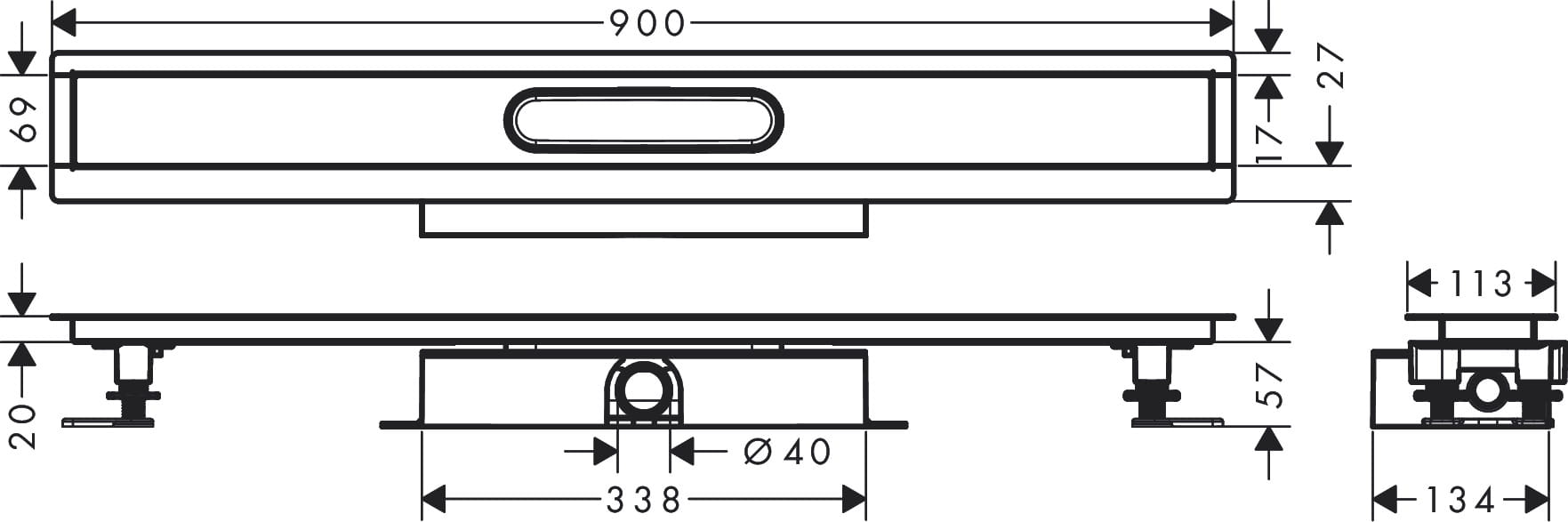 Hansgrohe uBox universal Kompletny zestaw do montażu płytkiego - 900 do odpływów liniowych