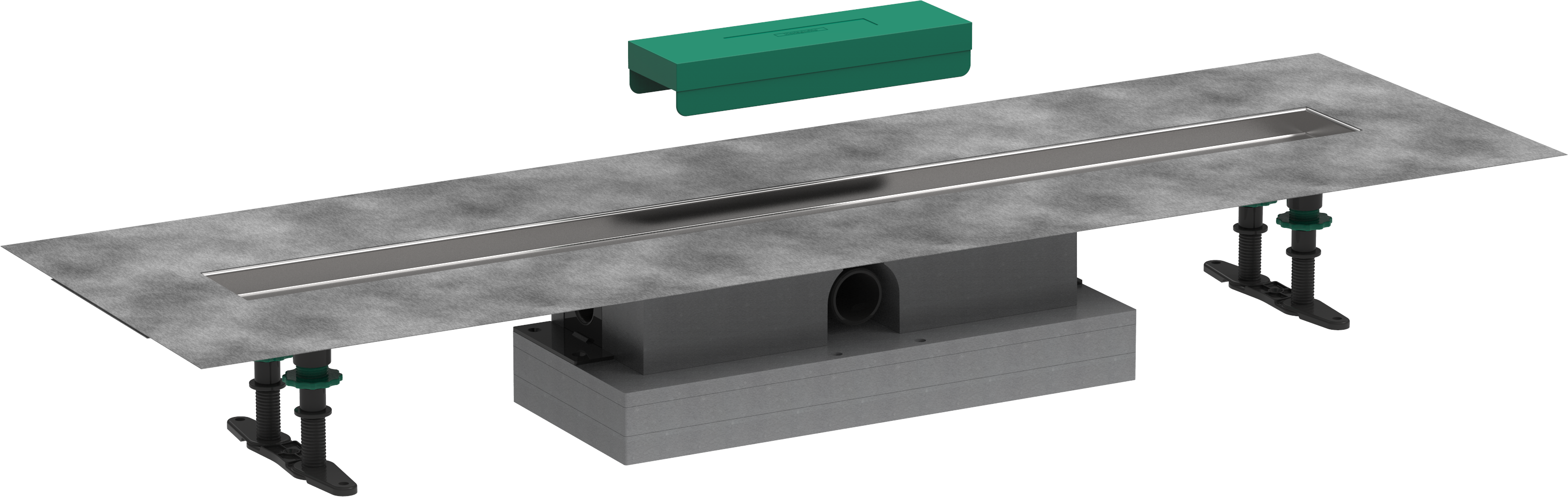 Kompletny zestaw do płaskiego montażu odpływów prysznicowych hansgrohe RainDrain Rock i RainDrain Match 900 (wysokość zamknięcia wodnego 30 mm)