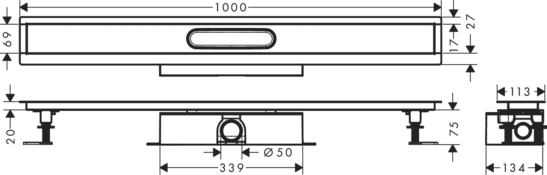 Hansgrohe uBox universal Kompletny zestaw do montażu standardowego - 1000 do odpływów liniowych uBox universal