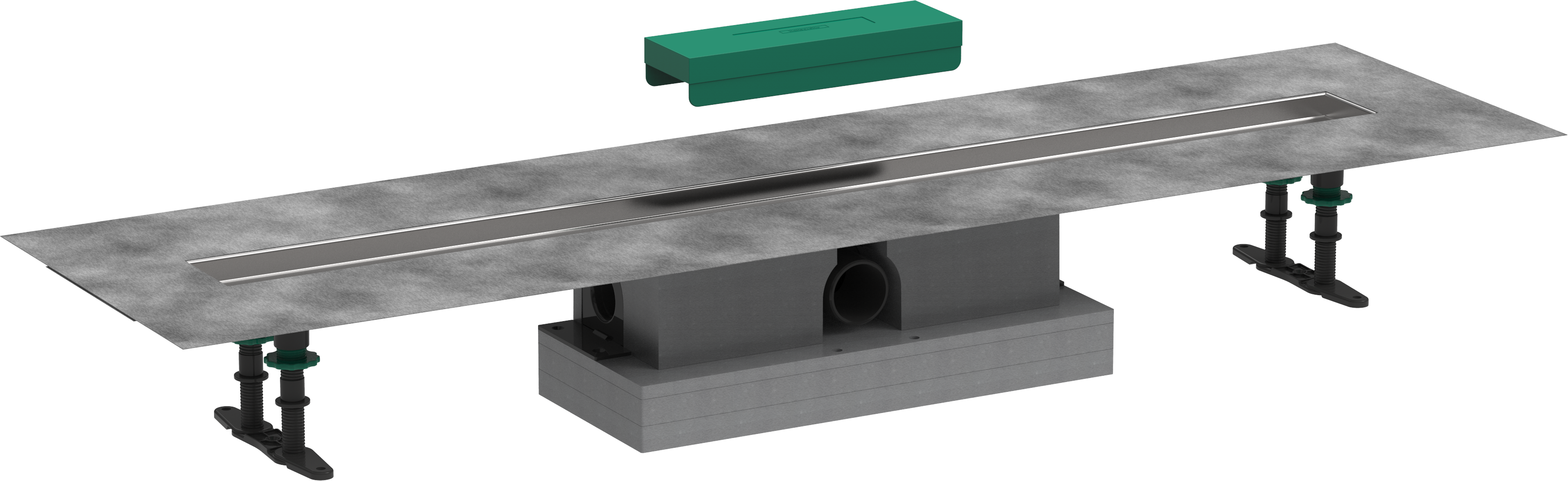 Kompletny zestaw do płaskiego montażu odpływów prysznicowych hansgrohe RainDrain Rock i RainDrain Match 1000 (wysokość zamknięcia wodnego 50 mm)