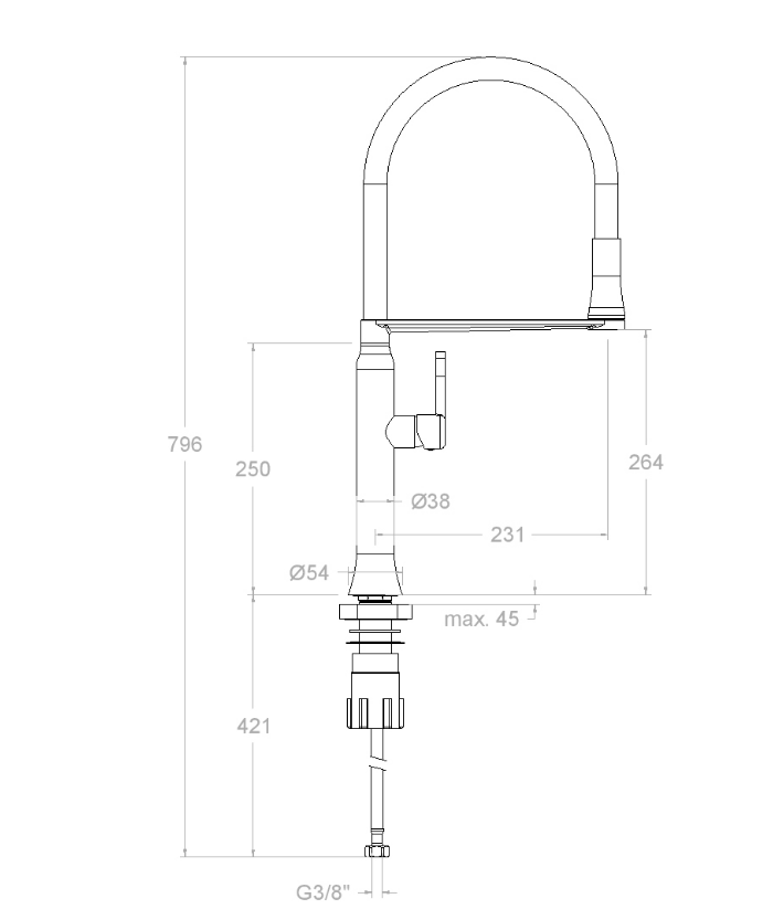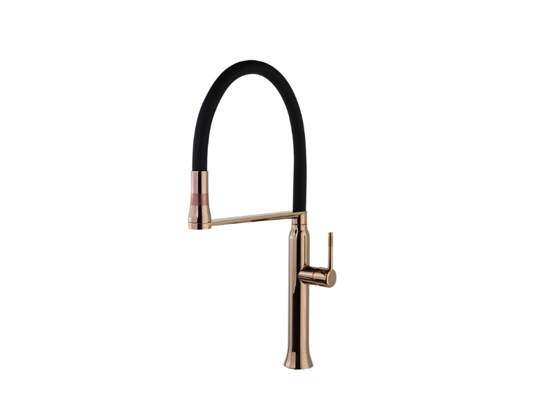 Bateria kuchenna z uchwytem magnetycznym i elastycznym wężem MAGNES KUCHENNY 386801MACU jednouchwytowa (miedziana). Korpus baterii wykonany jest z mosiądzu chromowanego z miedziowaniem, w którym zamontowana jest głowica ceramiczna z płynną regulacją temperatury wody. Ten model kranu posiada elastyczną silikonową wylewkę oraz unikalny uchwyt magnetyczny, który aktywuje się po użyciu kranu, gdy perlator powraca do pierwotnej pozycji. Za pomocą takiej konewki można skierować wodę w wymaganym kierunku, umyć warzywa i owoce oraz zebrać wodę do wysokich i dużych pojemników. Design tego modelu świetnie prezentuje się w każdym wnętrzu.