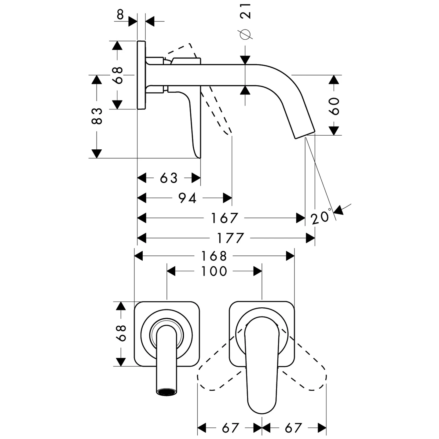 Jednouchwytowa bateria umywalkowa montaż ścienny podtynkowy z wylewką 167mm CITTERIO M HANSGROHE