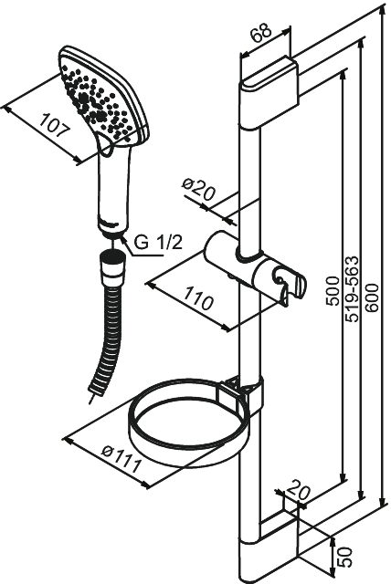 KOMPLET NATRYSKOWY WĄŻ, RĄCZKA, DRĄŻEK PINE CHROM DAMIXA