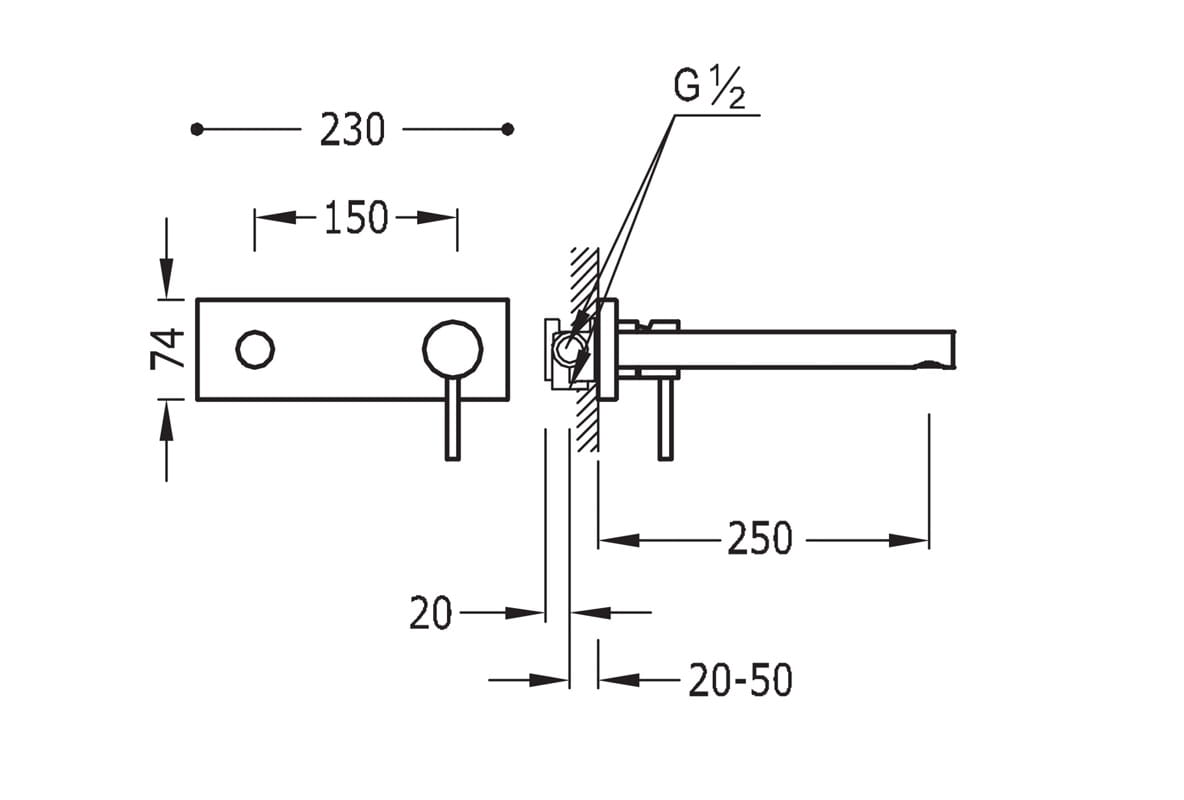MAX-TRES BATERIA UMYWALKOWA PODTYNKOWA L-250 TRES