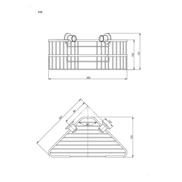 Dzięki "T"-kształtnej formie, koszyk świetnie wykorzystuje przestrzeń narożną — jest idealny do przechowywania żeli, szamponów, mydeł i innych kosmetyków. Ponadczasowy design kolekcji ANDEX Classic sprawia, że model 038CC pasuje zarówno do nowoczesnych, jak i tradycyjnych łazienek.