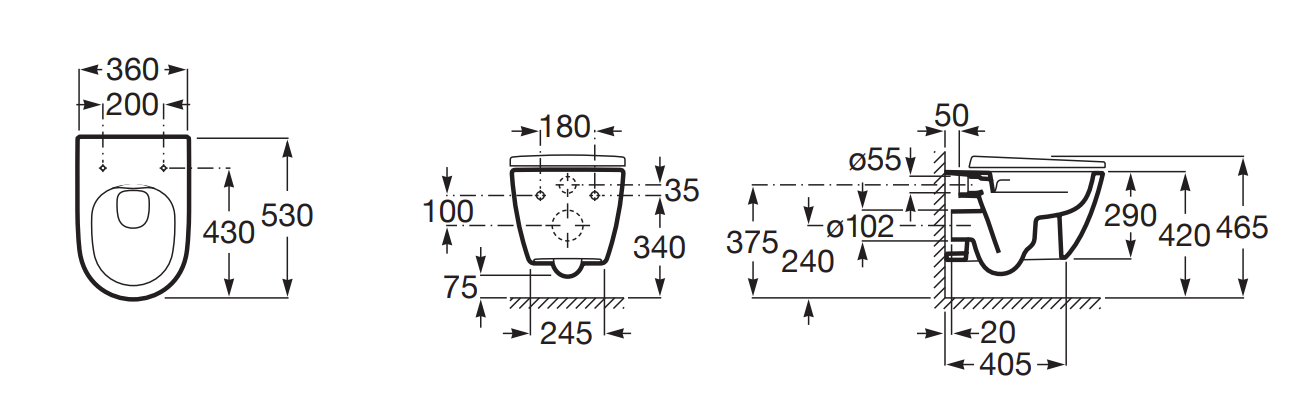 ONA MISKA PODWIESZANA WC 53CM RIMLESS VORTEX ROCA