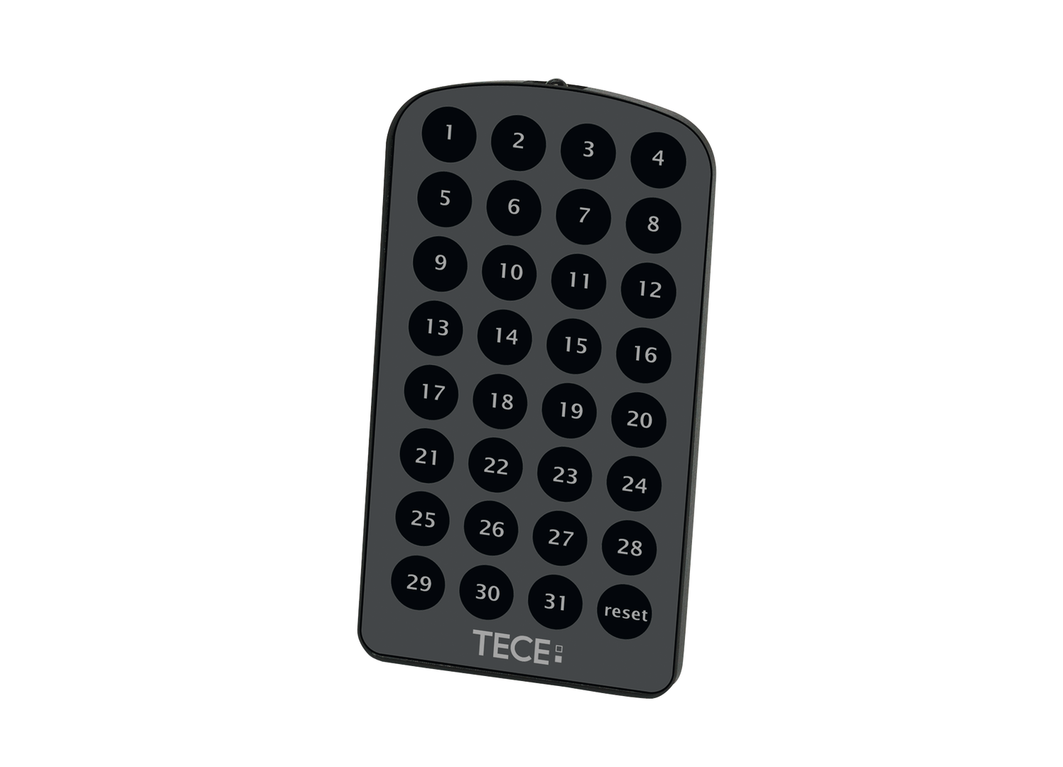 Pilot do programowania elektroniki TECElux mini. Możliwe do zaprogramowania funkcje: zakres detekcji, spłukiwanie higieniczne, czas uruchomienia, spłukiwanie bezpieczne i stopień jasności podświetlania wyświetlacza.