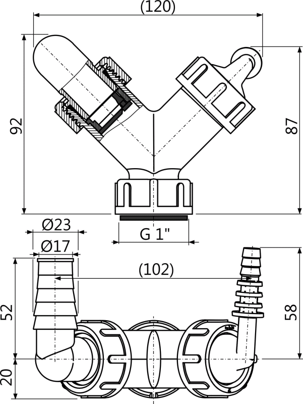 PODWÓJNY PRZYŁĄCZ DO SYFONU PRALKOWEGO PODTYNKOWEGO ALCAPLAST