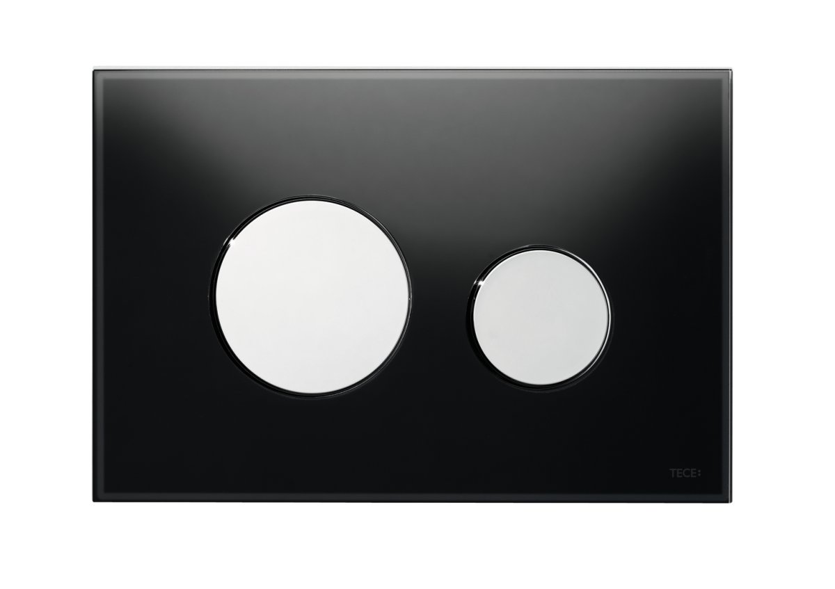 TECEloop przycisk spłukujący do WC ze szkła, spłukiwanie dwoma ilościami wody, szkło czarne połysk, przyciski chrom połysk