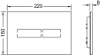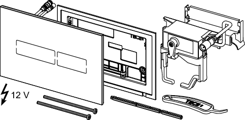 Elektroniczne przyciski spłukujące uruchamiane bezdotykowo do standardowych spłuczek TECE, z możliwością uruchamiania z przodu i mechanizmem uruchamiającym na wysokości ok. 1 m (środek przycisku spłukującego). Płaska płytka uruchamiająca ze szkła z materiałami montażowymi i silniczkiem uruchamiającym do spłukiwania dwiema ilościami wody. Odpowiednie także do montażu zlicowanego. Kompatybilny z płytką z koszem na kostki czyszczące.