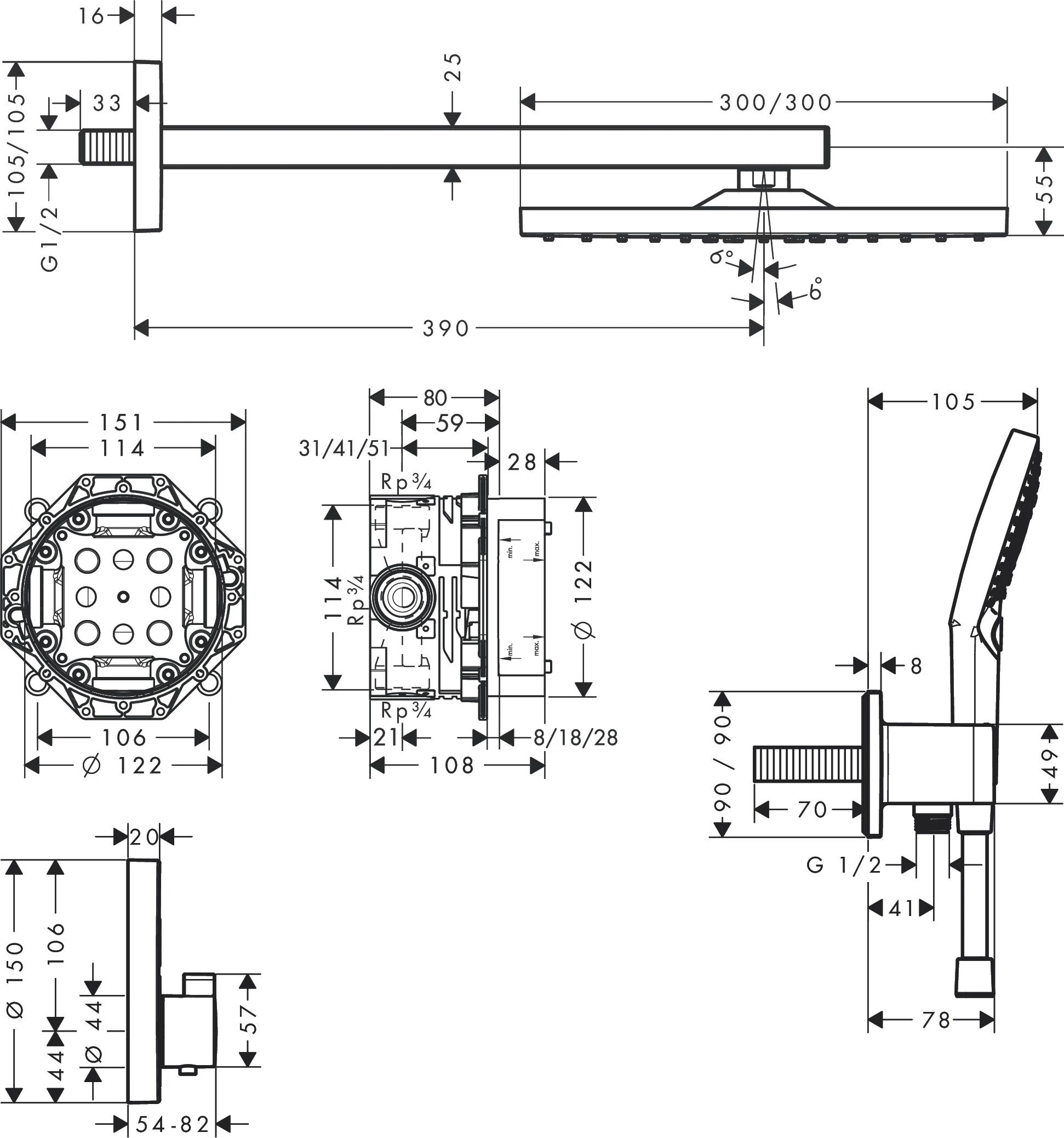 Hansgrohe Raindance E Zestawy prysznicowe podtynkowe 300 1jet z ShowerSelect Square